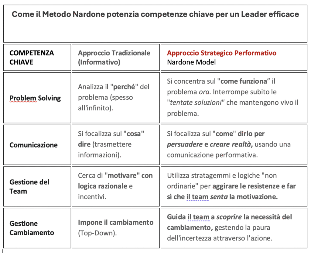 Il Counsel-Coaching Breve Strategico®, sviluppato da M. Cristina Nardone per il contesto aziendale, non è un’alternativa a queste competenze: è la tecnologia operativa per applicarle con successo.